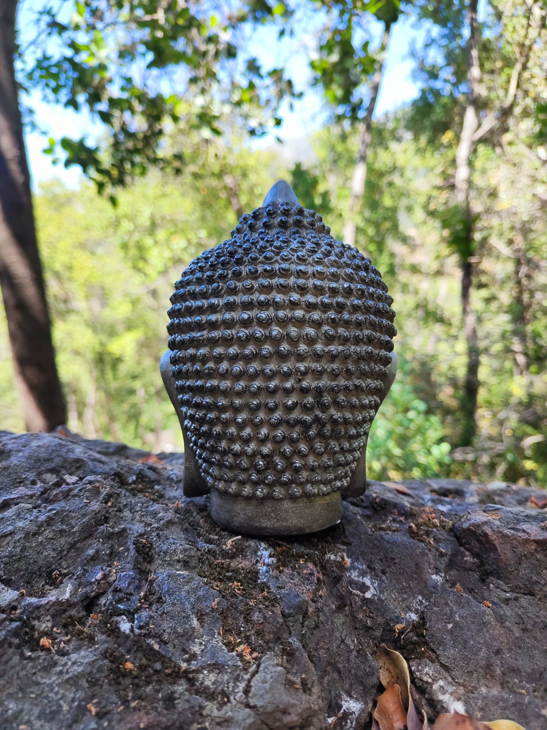 Hermosa cabeza de Buda fabricada en poliresina resistente, con textura detallada y acabado fino que realza cada rasgo. Su diseño transmite calma y equilibrio, ideal para crear ambientes armónicos y sofisticados.